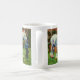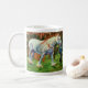 Uma caneca branca decorada com fotografias de um Cavalo de Shire