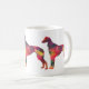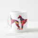Silhueta de raça de cão Saluki em padrão geométrico colorido. Esta vista lateral também pode representar o "Afghan Hound, Borzoi, sighthound, lurcher, Silken Windbound, Gazelle Hound, Persa Greyhound, Arabian Hound, Levrier, Russo Wolfhound, American Staghound