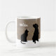 Caneca De Café Silhuetas do cão do gato preto na madeira