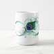 O símbolo do infinito com uma pena brilhante, verde, de pavão artístico sobre um fundo branco. Tatuagem.