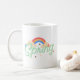 Bring the joy of springtime to your daily routine with this cheerful white ceramic mug. Featuring a soft pastel design with a colorful rainbow, buzzing bees, and the playful word “Spring” in mint green script, this mug perfectly captures the warmth and freshness of the season.