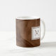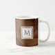 Uma simples e sutil caneca design de mármore em marrom escuro com um crachá quadrado branco moderno que você pode personalizar adicionando seu monograma inicial a. Esta é parte da Coleção de Monogramas Marble Imperador.