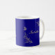Caneca De Café Simples flores douradas elegantes azul real