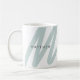 Caneca De Café Simples Moderno Inicial & Nome Sage Verde & Branco