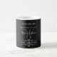 Um belo personalizado Simples, porém elegante: Linen Preto com Mug de Café Monograma. Altere facilmente todos os detalhes atuais. Trendy e chic, mas elegante e eterno - coordena-se lindamente com tantos estilos de casamento de hoje, então se sinta livre para personalizar e personalizar com seu próprio casamento ou qualquer das suas preferências de texto. O design apresenta os nomes da noiva e do noivo em um script elegante com letra de texto simples. Mostrado em um tema preto e branco com fundo de tecido de linho preto, mas pode ser personalizado para as cores do seu casamento para o texto e fundo. Adicione qualquer outro gráfico, texto ou monogramas à sua personalização deste modelo na " Editar usando a ferramenta Design " abaixo.