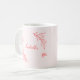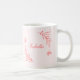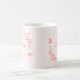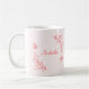 Caneca de café simples e única com flores cor-de-rosa corais românticas e elegantes e borboletas em fundo rosa claro