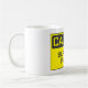 Um sinal de chão escorregadio em amarelo. Esta design parece realmente eficaz nestas Mug