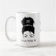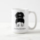 Seu pão bagunçado de coalhada está espalhado por estrelas e mantido no lugar por uma banda de cabeças de fases luas e o símbolo astrológico de Aquário é tecido em seu cabelo. Personalize seu nome ou sua mensagem curta personalizada de um lado e uma fonte serif preta soletra Aquarius do outro lado. Uma única lua estilizada e estrelas preenche o espaço do vazio no meio da caneca por interesse visual adicional. Perfeito como presente personalizado para ela, ou arranja um para todos os seus amigos ou irmãs de irmandade, para que não haja lutas sobre quem ganha a caneca legal para a cafeína matinal dela.
