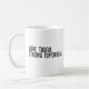 Uma caneca com o slogan motivador "Loja hoje, amanhã forte." em solteiro tipo texto preto.