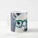 Playful twist to cute animal art and humor with a quirky white llama rocking teal glasses and holding a leafy branch.