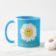 Esta caneca de café alegre apresenta uma flor sorridente, simbolizando positividade e felicidade. A frase "Pausa da Rotina" encoraja os espectadores a abraçar a alegria e encontrar leveza na vida.