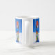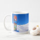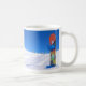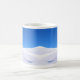 Fotografia de uma prancha de neve parada em neve sobre uma inclinação de neve contra um céu azul. Imagem em ambos os lados da caneca. Tamanho, estilo e cor da caneca é personalizável.
