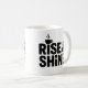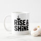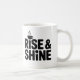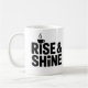 Acordar feliz com esta caneca de café Rise & Shine! Apresentando uma tipografia ousada e um ícone de xícara de café a vapor, esta design é perfeita para sua cerveja matinal, chá ou chocolate quente. Um presente de excelente para amantes de café, baristas, e qualquer um que precise de um começo alegre para o seu dia.