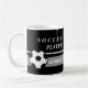 Personalized sports coffee mug for soccer fans. Easy customization online including changing colors.