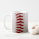 Uma fotografia macro de uma marca nova Baseball com costura vermelha. Presente perfeito para a aberração do softball ou fanático desportivo.