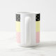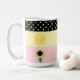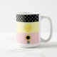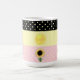 Linda caneca com sol e bolinhas em listras pretas, amarelas e cor-de-rosa.