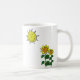 Eles são bordados? Não, mas eles parecem mesmo. Um sol brilhante e feliz brilha sobre dois girassóis altos. Um design perfeito para o verão.