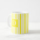 Esta caneca fofa apresenta listras amarelas e brancas. Pode ser personalizado com uma inicial para torná-lo um presente especial para qualquer ocasião.