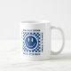 "Sorria. É grátis" - Um design azul inspirado por um retrô com um sorriso alegre que traz um toque de nostalgia e boas vibrações.