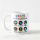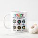 Playful space themed artwork made for curious kids and young students. Cute symbols like UFO, planet, moon, stars, rocket and alien help children explore space science and basic astronomy in a fun and friendly way.