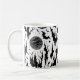 Uma caneca de Halloween assombrosa com uma cena escura e misteriosa de um cemitério com lápis, morcegos e uma lua de cheio. Perfeito por adicionar um toque de elegância gótica à sua estação assustadora.