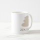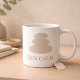 Minimal zen-inspired design featuring a white ceramic surface with a stacked stone icon and refined serif text reading Zen Calm. The clean layout and neutral palette suit modern kitchens, office desks, or morning routines centered on balanced, uncluttered surroundings.