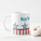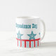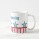 Estrelas e Stripes Sonoras Vibrantes e divertidas, com listras quicas e uma fileira de cinco estrelas legal e fundas. Esta caneca de na moda permite mostrar seu lado patriótico enquanto aprecia sua bebida favorita! Personalize com seu próprio texto para dar a este design um toque pessoal! Esta design também é apropriada para o Dia Memorial!