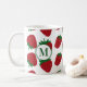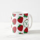 Adicione uma inicial a esta caneca padrão de morango para um presente personalizado de caneca de café. O padrão está em ambos os lados da caneca, juntamente com a inicial.