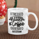Cute coffee mug design with a cute phrase in black typography, ideal to give to that special person who loves coffee. The design with the phrase "STRESSED BLESSED COFFEE OBSESSED" can be personalized with your name. Don't think twice and get yours now