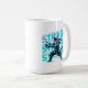 Samurai warrior cat in traditional armor dominates this cyan and black soccer striker design with Japanese katakana lettering. Bold manga artwork combines martial arts intensity with soccer passion. Essential mug for players, coaches, anime fans, and competitive athletes who fuel up like warriors.