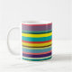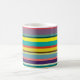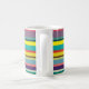 Esta caneca tem um design de faixas horizontais em tons de azul, verde, marrom, roxo, vermelho, amarelo, laranja e rosa.
