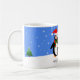 Esta caneca de fotos de feriado totalmente personalizável tem uma design divertida com uma família de pinguins embrulhados contra o frio. Eles estão vestindo lenços raspados e chapéus de natal, num fundo de flocos de neve estilizados. À distância estão três árvores de abeto estilizado. Carregue três fotos quadradas de amigos ou familiares para criar os rostos dos pinguins. A legenda editável é "Feliz Natal 20XX". [Fotografias de Espaço Reservado © Storytree Studios, Stanford, CA]