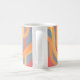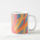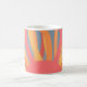 Esta caneca tem uma design de natureza de um nascer do sol feito de linhas curvas em vermelho, amarelo e laranja, um sol, e o céu.