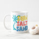 Ponha seu café matinal com um toque de verão! Esta caneca "Sun Salt Sand" traz vibrações quentes e tropicais ao seu dia com texto ousado e colorido e um gráfico de palmeiras de na moda. Quer você esteja gostando de um copo aconchegante em casa ou sonhando com suas próximas férias na praia, esta caneca é um lembrete diário de dias de verão sem carinho. Perfeito para amantes de café, vagabundos de praia, e qualquer um que viva por sol e ondas oceânicas. Faz um presente excelente para os entusiastas e viajantes de verão!