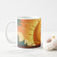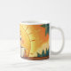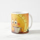 Um desenho animado de um sol personificado aproveitando uma xícara de café a vapor ao amanhecer. Colocada contra um pano de fundo quente e tropical com folhas de palma, a imagem captura a aconchegante e alegre essência de um início matinal perfeito.