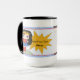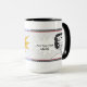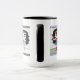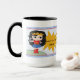 A metade desta caneca super dos desenhos animados da menina está na cor e a outra metade é branco preto, ambo lado tem bolhas que do discurso você pode colocar seu texto dentro. Tipo de como, antes do café (preto e branco) e após o café. :) (o lado colorido!)