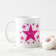 Superstar Collection Mug em magenta apresentando uma cascata de estrelas divertidas. Esta design de estrela giro e giro faria um presente de excelente para qualquer filha, sobrinha ou outra jovem mulher na sua vida. O texto pode ser deixado como está ou pode ser personalizado para dizer o que você quiser. Dezenas de fontes e cores para escolher!