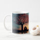 Um design de história de amor sonhadora e incomum que apresenta dois amantes sob uma árvore brilhante em forma de coração, com estrelas, luz de lua e aviões de papel voadores, coração de carregando. Uma trabalho de arte romântica perfeita para canecas que capta emoções profundas e amor eterno.