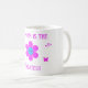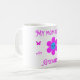 Esta imagem apresenta um design alegre e colorido com a frase Minha mãe é a maior" escrita em uma fonte estilizada rosa brilhante. No centro, há uma flor fofa com pétalas cor-de-rosa e um rosto circular azul, sorrindo calorosamente com bochechas azuis. Ao redor da flor estão duas borboletas cor-de-rosa e dois corações cor-de-rosa esboçados, acrescentando um toque lúdico e amoroso.