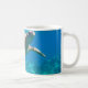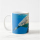 Fotografia subaquática de uma tartaruga marinha nadando em água cristalina logo abaixo da superfície.