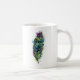 design de tatuagem colorida de penas de pavão a tinta e aquarelas numa caneca de café