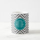Caneca De Café Teal Charmala Chevrons Monograma Personalizado