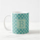 Caneca De Café Teal Monogram Polka Dot Pattern