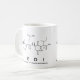 Tedi soletrado em aminoácidos como T E D I (ácido glutâmico treonina Isoleucina) numa caneca para o cientista em si.