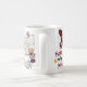 Caneca vívida, colorida que caracteriza a senhorita Bindergarten, Coco no disfarce com monarca e joaninhas.
