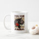 Uma caneca para um mestre da tênis mesa, com um desenho engraçado de um bearcat binturong esportivo fazendo uma batida na testa de pinos. Use "Personalizar este modelo" para alterar o texto "PING PONG ANIMAL" e fazer um presente personalizado exclusivo. As mudanças de texto são refletidas em ambos os lados. É um ping pong binturong!
