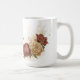 Bela caneca de café com tom terroso com flores de terracota e bege dourado com folhas verdes. PARA MAIS PRODUTOS SEMELHANTES clique na coleção acima ou entre em contato