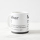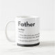 Esta linda caneca de dia de os pais em preto e branco tem uma definição do nome "Pai" (1.Toque como uma criança, dê conselhos como um amigo e proteja como um guarda-costas. 2.Super-herói sem capa). Este melhor chaveiro de pai é único e tão legal. Perfeito para mostrar seu amor e sua gratidão no dia de os pais. Qualquer pai vai adorar esta melhor caneca de pai. :) Sorte sua! Você tem quatro opções de cores para este presente de dia de os pais. Feliz dia de os pais! (canecas tipográficas; melhores pais; pais; canecas; canecas fofinhas; citadas; canecas modernas; dia do pai)