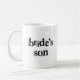 Refrigere t-shirt do filho da noiva preta do design de texto, canecas, mousepads, botões, sacolas, e o outro filho da engrenagem da noiva que pode ser personalizada com texto ou um nome. Nós temos t-shirt pretos de harmonização do texto e outros artigos para todos os membros da festa de casamento e dos membros da família!