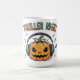 Um pouco assustador, picante, um pouco bonito... Esta caneca com o tema do Dia das Bruxas com o texto "Noite de Troia" com fones de ouvido de visto de cabeças de abóbora laranja é excelente de música e amantes de horror.